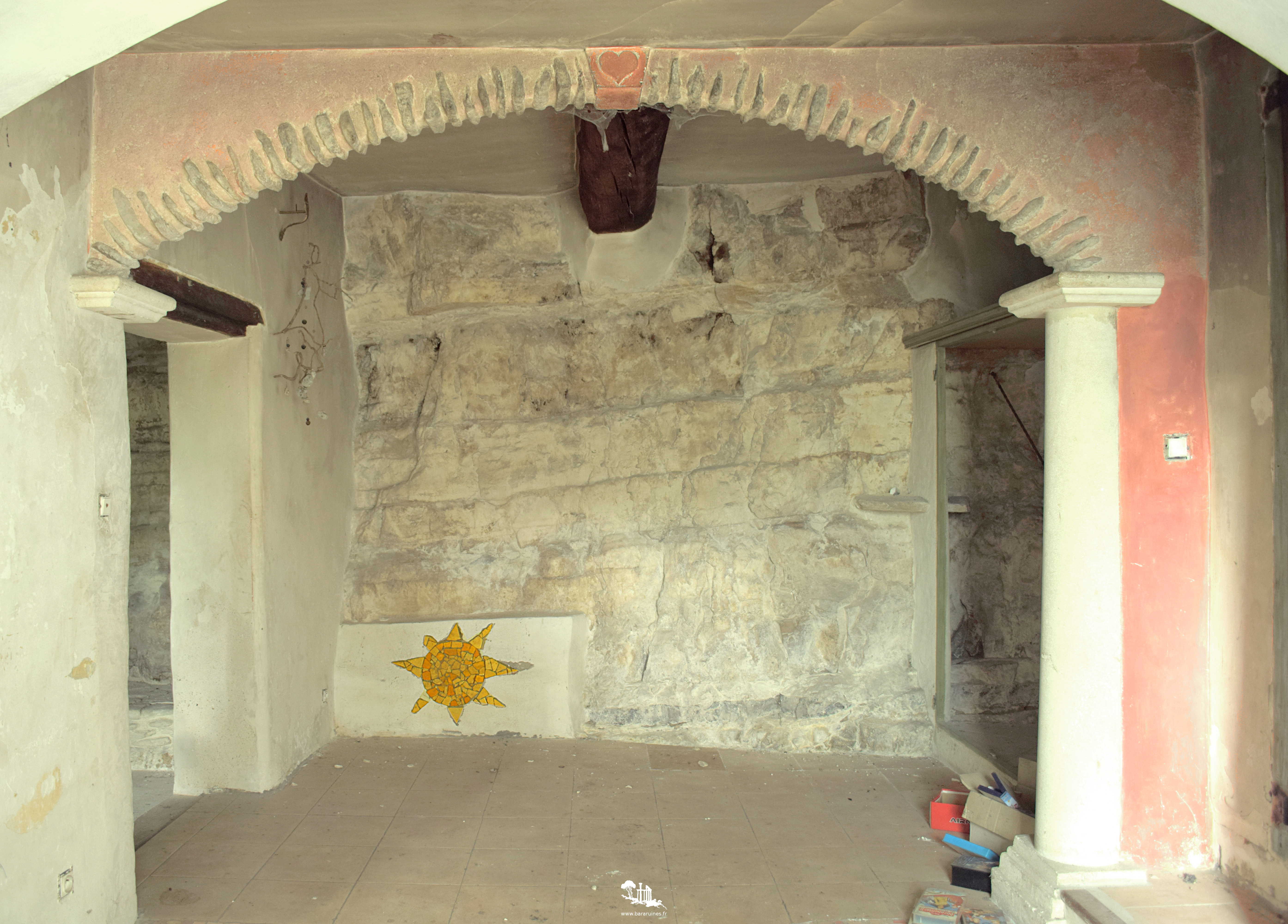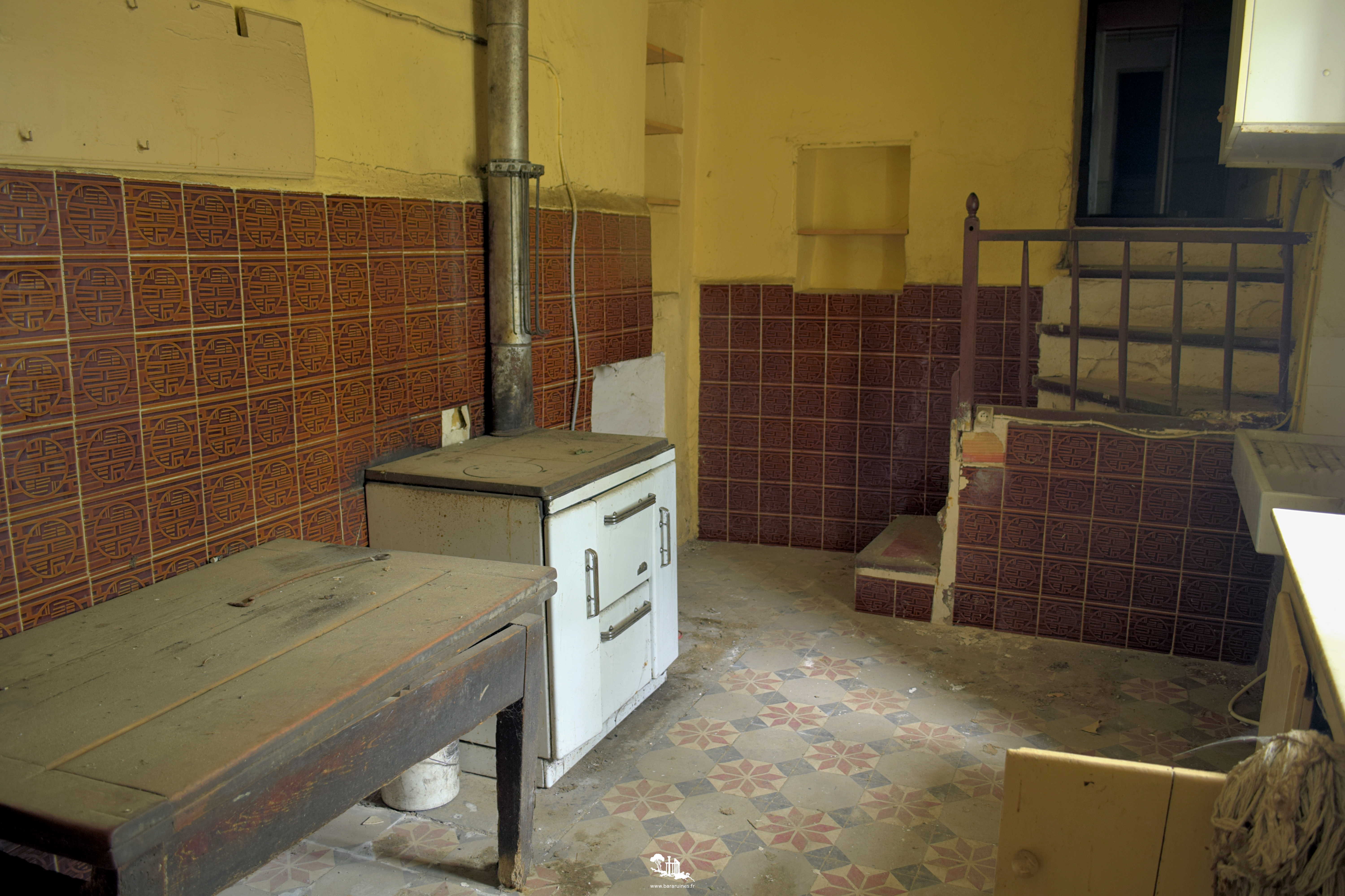 Nous partons, en passant par l'ancienne cuisine, restée dans son jus et qui comprenait a priori l'entrée de la partie principale de la demeure. Voici un