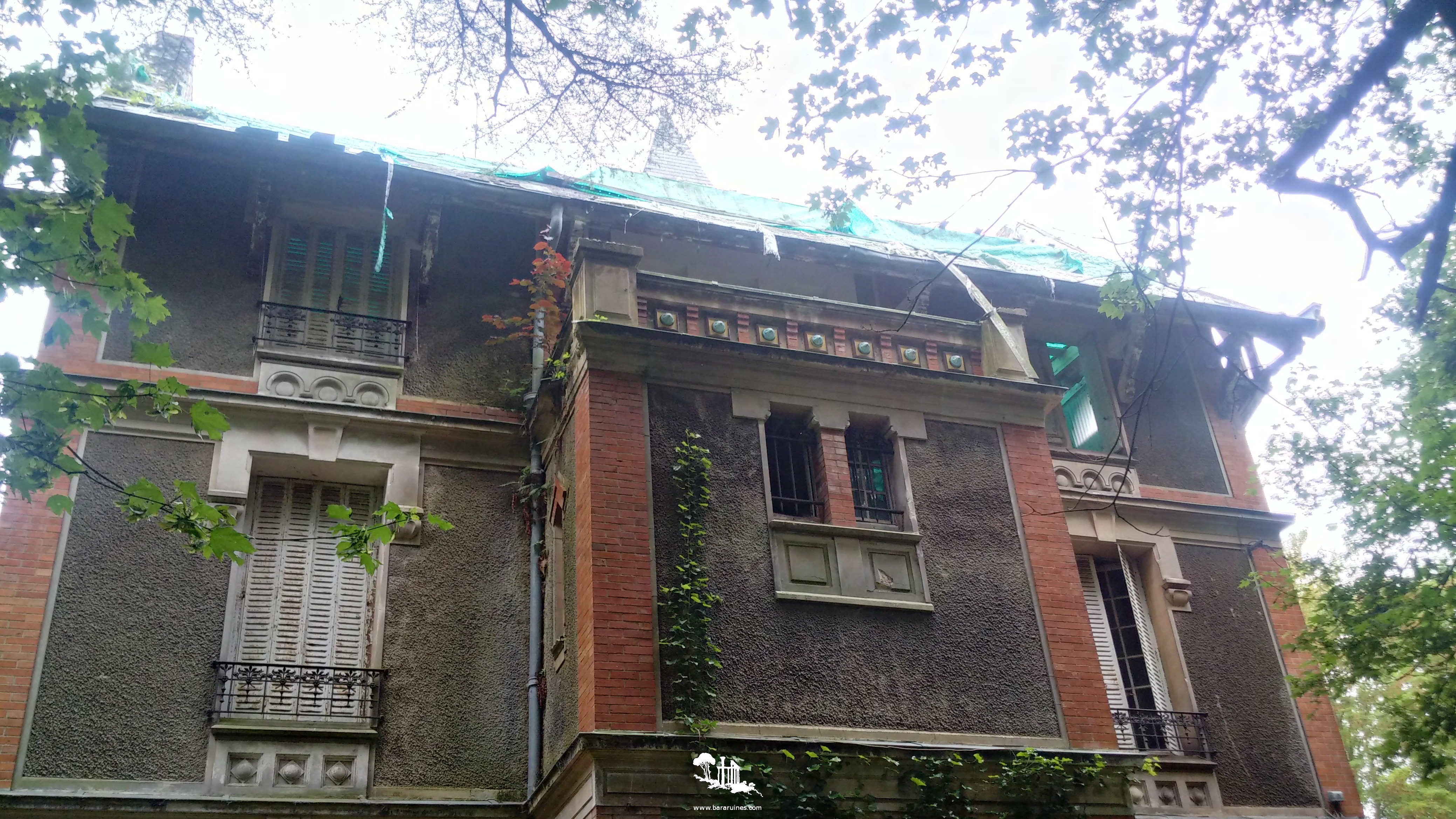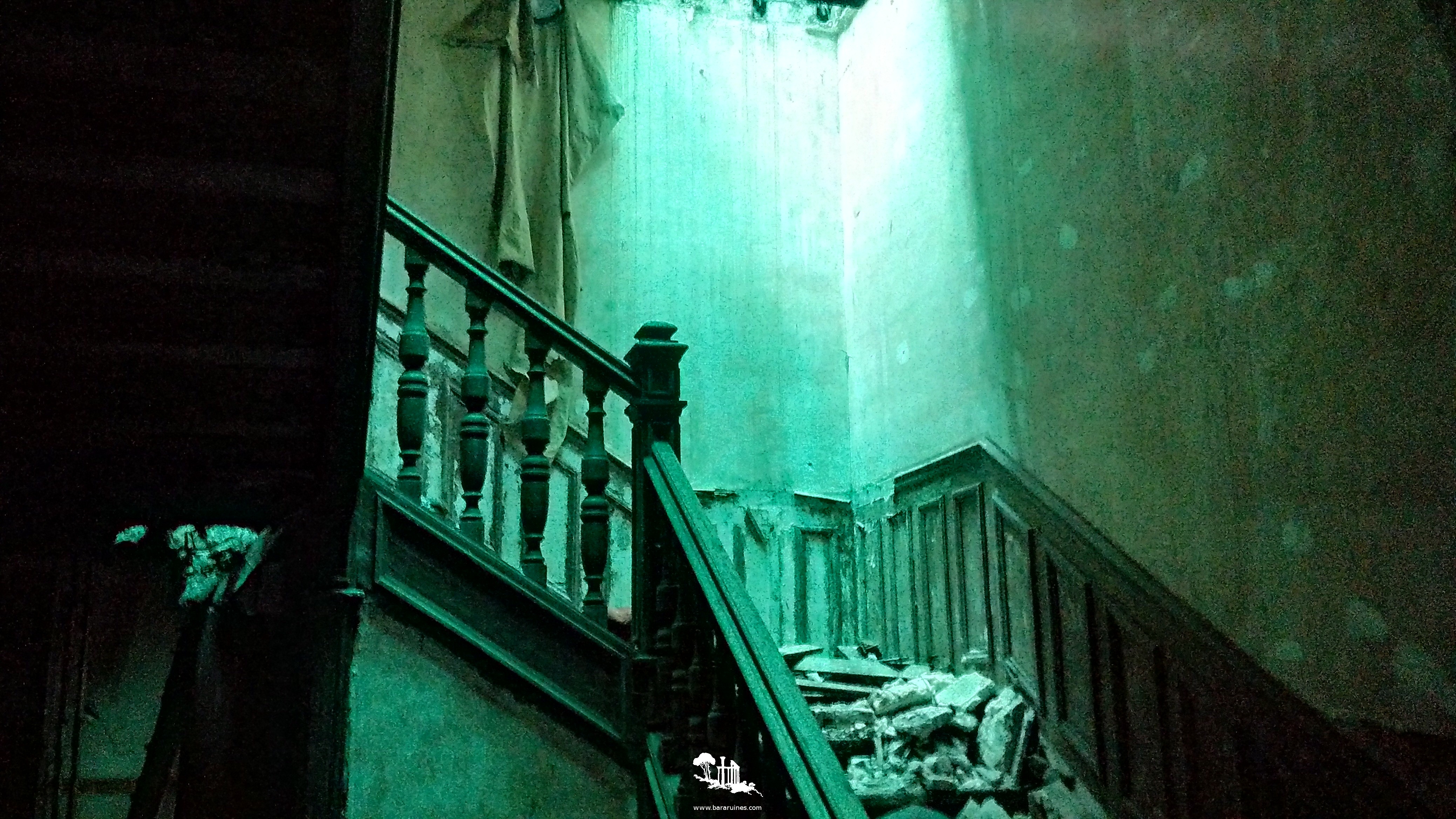 n'y a rien. Au dernier étage, il règne une atmosphère paisible. La bâche verdâtre qui protège une partie du toit qui a disparu donne un aspect enchanteur à ce niveau. Il n'y a malheureusement pas plus à voir. Bizarrement, le balcon du dernier étage ne possède aucun accès, c'est donc uniquement un point de design de l'époque (~1920). Maintenant,