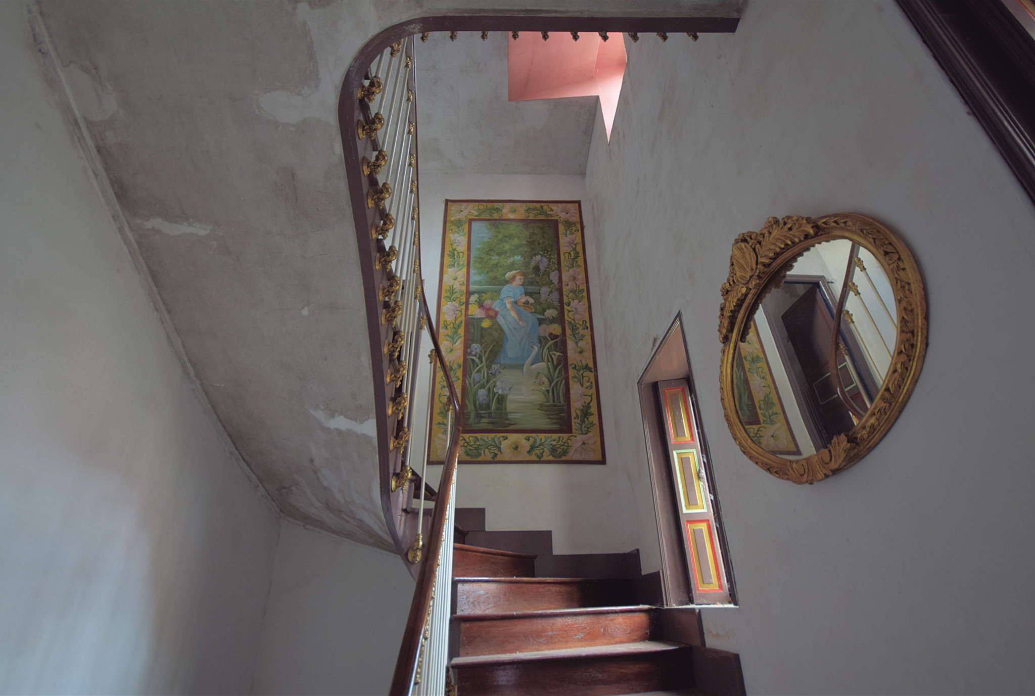 Retour en bas. Le temps de prendre quelques clichés supplémentaires qui confirment que les portes et ornementations ont été repeintes récemment. On peut